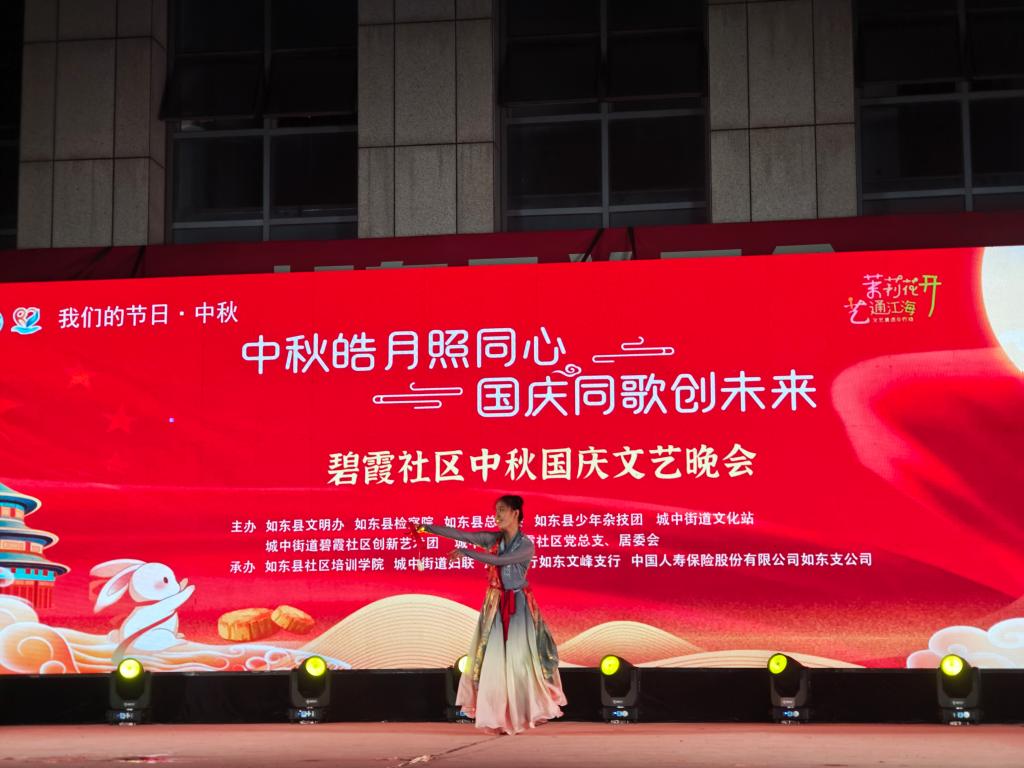 9月26日晚,由如东县文明办、如东县检察院等单位主办,如东县社区培训学院、城中街道等单位承办的“中秋晧月照同心,国庆同歌创未来”中秋国庆文艺晚会在掘港镇五一广场精彩上演。