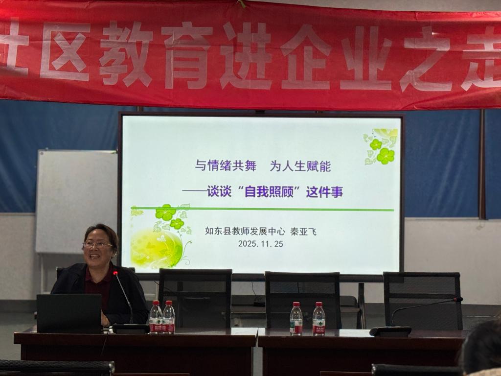 为精准服务企业职工心理健康需求,提升职工心理调适与自我关怀能力,11月24日至26日连续三晚,如东县社区培训学院主动“送教上门”,在桐昆集团开展职工心理健康专题培训,特邀如东县教师发展中心心理健康教研员秦亚飞老师主讲,为企业职工带来一场实用的“心理赋能课”。