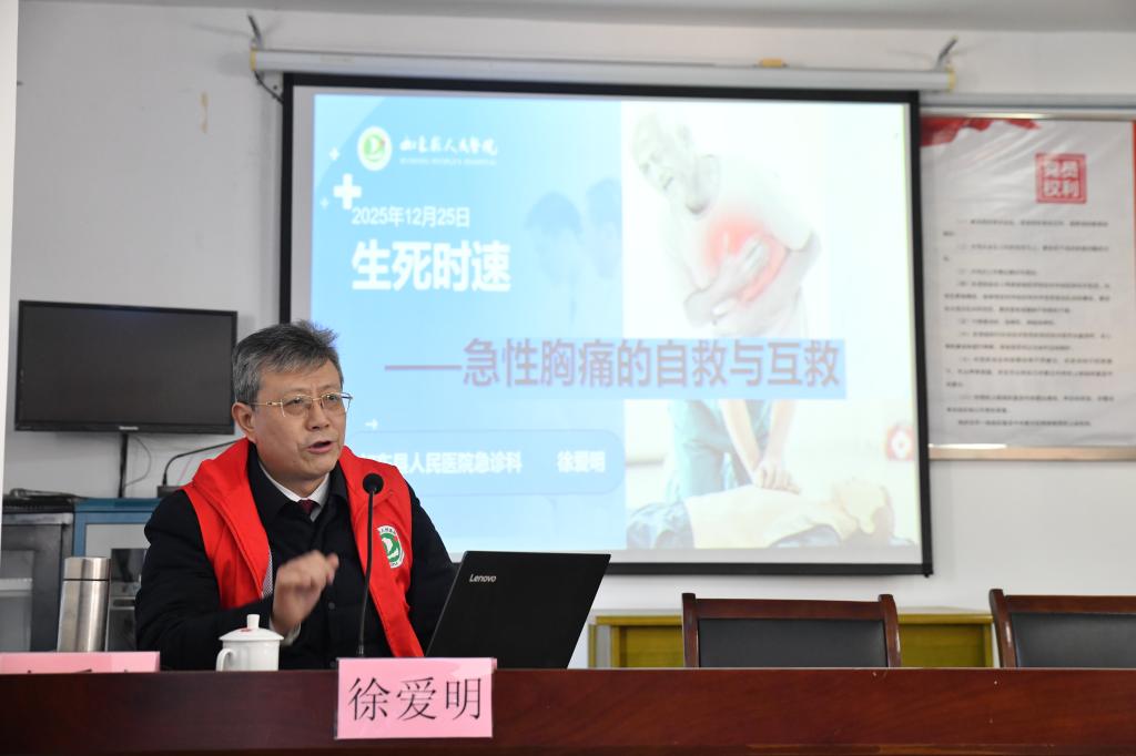 1225日,如东县社区培训学院特邀如东县人民医院急诊科主任、主任医师徐爱明,为双甸镇70余名老干部开展急性胸痛自救互救专题讲座,并同步进行心肺复苏实操培训。