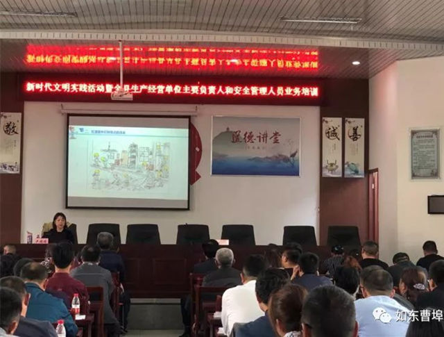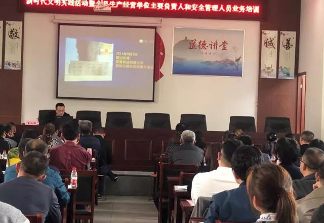 为了强化生产经营单位安全生产主体责任,全面提升企业主要负责人和安全管理人员安全生产法律知识和管理能力,强化政府安全宣传教育工作责任,根据相关要求,5月9日县安委会领导及专家到曹埠镇举办“生产经营单位主要负责人和安全管理人员业务培训班”,为我镇所有企业主要负责人和安全管理人员进行业务培训。