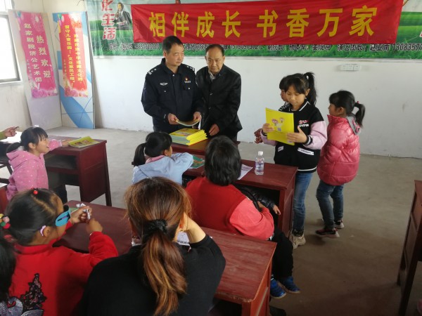 上午九点,活动正式开始,大同村村委会志愿者崔娟主持了整场活动。活动伊始,丁店小学的志愿者杨文丽老师,带着孩子们学唱歌曲《大海啊故乡》。接着,大豫镇司法所的志愿者俞静给孩子们带来了三个寓教于乐的法治小故事。乐园顾问陈云山校长给孩子们深情讲述了《大豫镇境内的三场战斗》,家乡的红色历史让孩子们深受震撼。陈爷爷还当场给孩子们分发了自编的《大豫烈士读本》,让孩子们回家好好阅读,继承先烈遗志,努力学习,将来报效祖国。大豫镇交警中队的志愿者胡剑忠也给孩子们赠送了《文明交通》教育读本,赠书之后还给孩子们进行了交通安全教育。