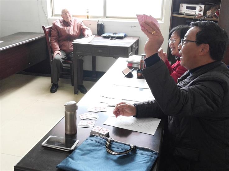 打长牌这一陋习在我镇及周边很多,因为输赢老朋友变仇人,引发许多家庭矛盾和社会矛盾。为了推动移风易俗工作,镇社区教育中心决心推广既娱乐又健脑还能讲合作的掼蛋来代替长牌。