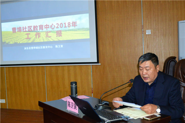 镇社区教育中心校长陈卫黄分两大块从六个方面充分展示了在镇党委政府、县教育局、镇教育联络组的关怀指导及各相关部门、兄弟单位的协同努力下,2018年曹埠镇社区教育的丰硕成果,受表彰的先进单位和个人为我镇社区教育事业做出了突出的贡献。
