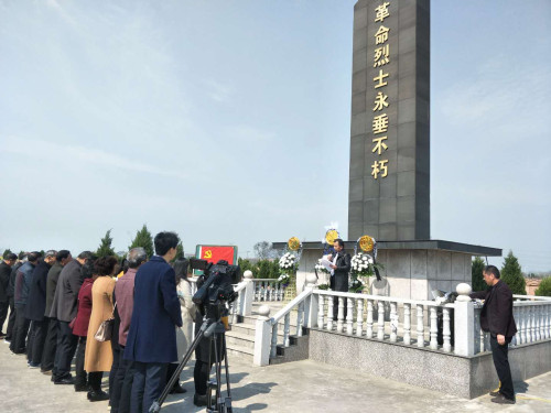 庄严肃穆的长沙镇革命烈士陵园里,人们怀着无比崇敬的心情在纪念碑下向革命烈士们默哀致敬;长沙镇社教中心主任李红余同志介绍的烈士革命事迹又把人们的视线带到战火纷飞的年代;老中青党员们在雄伟的革命烈士纪念碑前重温入党誓词;教育党总支、退休党支部和幼教支部的负责人向烈士们敬献花篮;人们纷纷献上百合花,表达对革命烈士们的缅怀和敬仰之情。