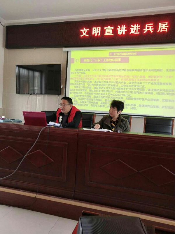 接着镇社区教育中心办公室主任曹永东为大家宣讲了“乡村振兴战略”,曹主任从乡村振兴战略提出的背景;近年来党和国家为振兴乡村采取的措施;乡村振兴战略的鲜明特征;实施乡村振兴战略的伟大意义等几方面详细阐述了国家的乡村振兴战略,曹主任激励大家要积极响应当下新时代文明实践活动的号召,为实现“产业兴旺、生态宜居、乡风文明、治理有效、生活富裕”的总目标而努力奋斗。