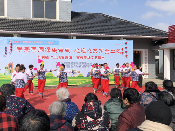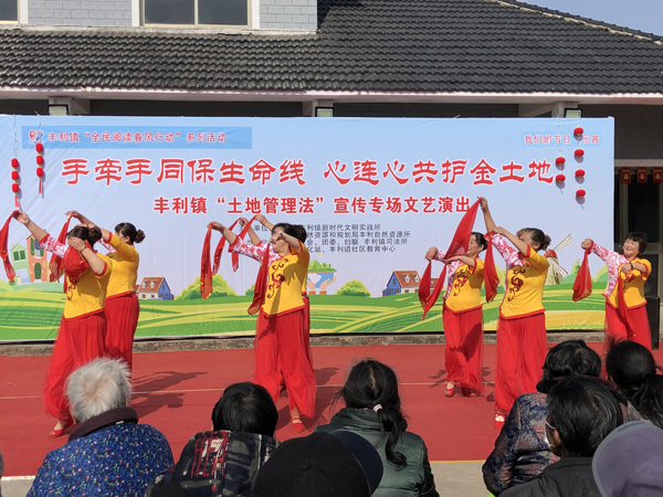 为进一步学习宣传土地管理法,营造合理利用土地,构建资源节约型社会的浓厚氛围,由丰利镇文化站、社区教育中心协办的“土地管理法”宣传专场文艺演出于2月24日在丰利镇龙口村广场进行,现场吸引了200多名居民前来观看。
