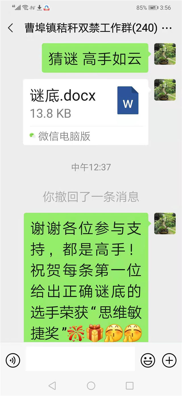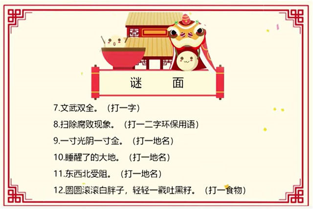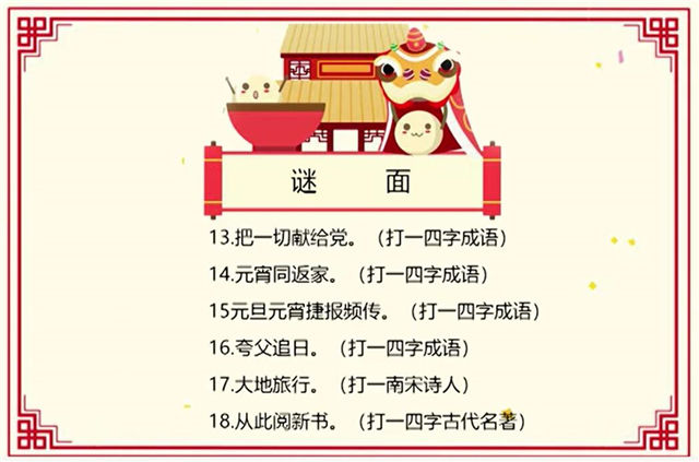 2月24日,主办方通过“曹埠社教”等微信公众号和各社区(村居)微信群推送元宵佳节的名称、由来、节日习俗等传统文化知识,通过文字、图片等形式开展了“儿时的元宵记忆”线上交流活动,营造浓厚的节日氛围,并发布了26日12点至14点将开展“云上猜灯谜 欢乐闹元宵”的活动预告。26日,活动时间一到,主办方随即发布了活动规则和谜面,很短时间内,便吸引了众多参与者踊跃竞猜。活动结束后,主办方及时公布了谜底,满足了灯谜爱好者的好奇心和求知欲,并祝贺每条第一位给出正确谜底的选手荣获“思维敏捷奖”。