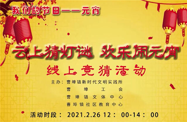 2月26日,农历正月十五元宵佳节,如东县曹埠镇社区教育中心等单位联合举办了“云上猜灯谜 欢乐闹元宵”活动。
