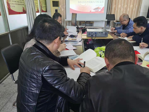 如东县长沙镇社教中心主任、成教支部书记李红余同志主持组织日专题活动。参加活动的同志们首先共同学习了《习近平谈治国理政(第三卷)》部分内容;认真学习了洋口港经济开发区(长沙镇)党史学习教育动员大会会议精神和《如东县长沙镇教育系统开展党史学习教育活动实施方案》;李红余同志给参加活动的同志们作了题为《不忘初心,永远跟党走》的党史辅导讲座;活动中,党员同志们还讨论决定了本支部开展党史学习教育活动的具体部署。