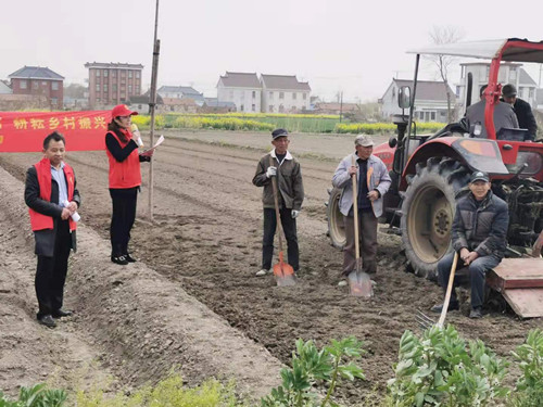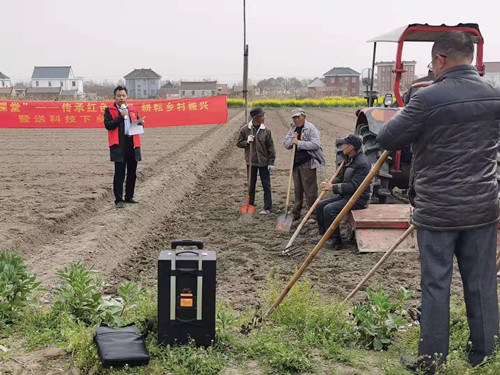 3月30日下午,如东县长沙镇社教中心联合长沙镇文化站,组织开展“党史田间课堂”活动,赴长沙镇四桥村田间地头,开展党史教育活动。