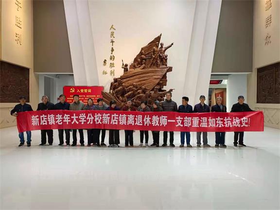 4月8日,如东县新店镇老年大学分校离退休教师一支部开展了“党史学习教育”专题活动,并一致决定开展“重温如东抗战史”——参观“苏中四分区反清乡斗争陈列馆”活动,镇成教支部委员——社区教育中心张建军同志负责组织参观活动志愿服务。4月13日,经张建军老师与陈列馆协调准备,新店镇老年大学分校离退休教师一支部一行18名老同志如期来到苏中四分区反清乡斗争陈列馆。在讲解人员的带领和精心讲解下,老同志们不仅重温了一遍如东抗日斗争史,还结合上辈传承下来的斗争史进行了交流分享,言辞之间无不充满对先烈先行的钦佩之情。最后,在支部书记高长泉同志的引领下,老同志们再一次面对誓词牌重温了“入党誓言”,那铿锵的宣誓声进一步抒发了老同志们的“爱党爱国”的忠贞真情。