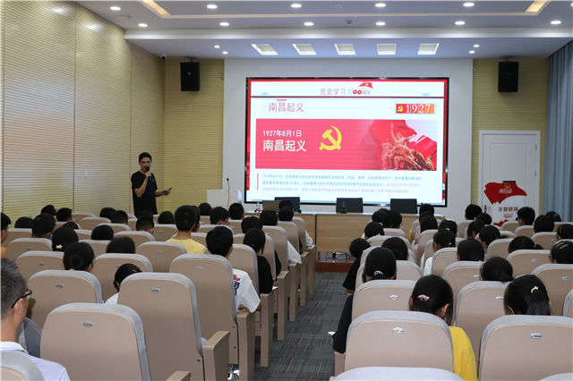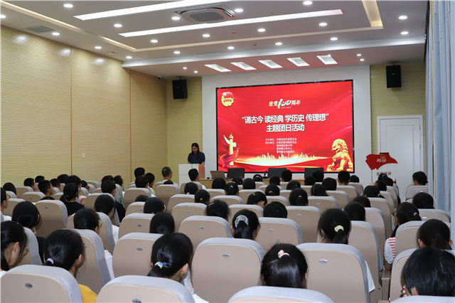 随后,曹埠社教志愿者,镇初中顾兵老师为与会的部分学生上了一堂主题为“恰是百年风华正茂”的团课,顾老师以图文、视频相结合的方式带领大家走进党的历史,了解党的故事,使与会学生深受感染。