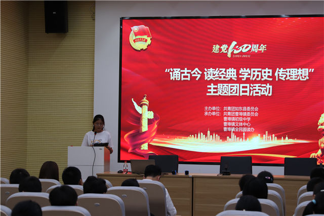 南通市如东县曹埠镇是如东第一党支部诞生地,有着光荣的革命历史和优良的革命传统,为了传承红色基因,赓续红色血脉,聚力乡村振兴,9月7日下午,由如东县团委主办,曹埠镇团委、曹埠中学、镇社教中心、镇全民阅读办承办的“诵古今 读经典 学历史 传理想”主题团日活动在如东第一党支部纪念馆成功举办。如东县团委副书记董然、镇团委书记邵棣、曹埠中学的部分师生、镇社教中心的领导、专职教师等近百人,参加了活动。
