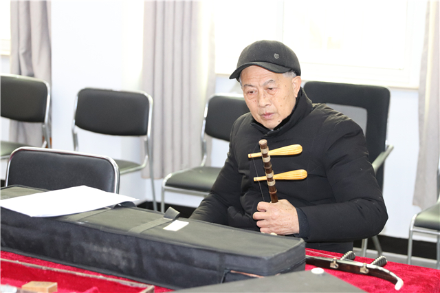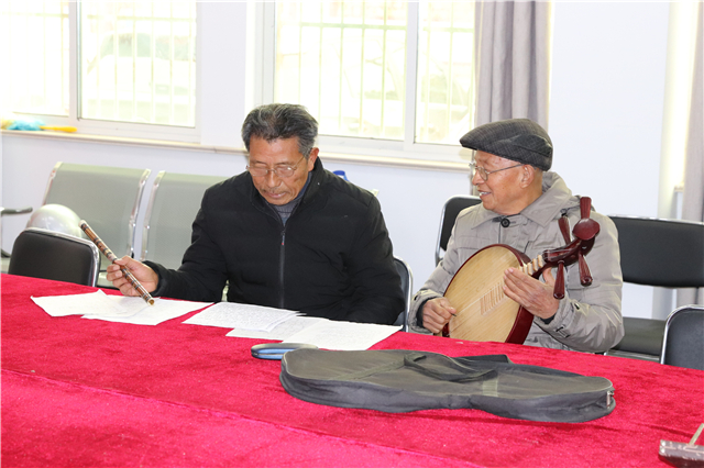 县老年大学傅国成校长是器乐班的发起人,他带领沈明、季海平、吴世林等成员一起演奏了《珊瑚颂》《南泥湾》《绣金匾》《二月里来》《采茶舞曲》等乐曲,并不时交流、切磋演奏技巧,商讨解决演奏中出现的瑕疵。曹埠分校优秀老年学员莫如兰在器乐班的伴奏下演唱了《红梅赞》和《红灯记》选段。